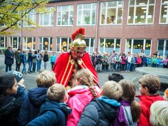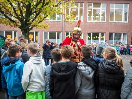 Kurz nach der Pause ging heute Morgen ein Raunen über den Schulhof. Man hatte ihn bereits entdeckt. Der St. Martin war gekommen, um sich die Fackeln der einzelnen Klassen anzuschauen und die Kinder einzuladen. Denn am Freitag ist es wieder soweit.