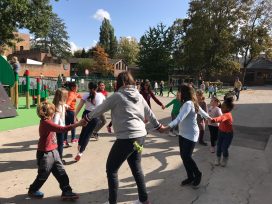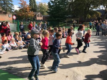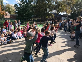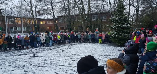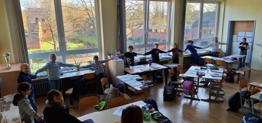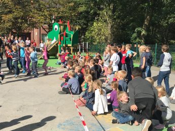 Frau Küsters und Herr Buffart vom Förderverein hielten eine kurze Rede und die Löwenklasse 1a zeigte eine sportliche Einlage. Es gab Burgo-Muffins und Popcorn für alle.