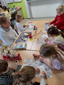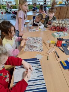 Der erste Jahrgang bastelt weihnachtlich. Das ist aber noch ganz geheim. Hier ein paar Einblicke: