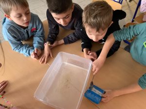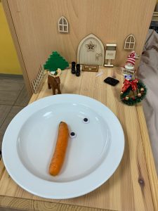 Im zweiten Jahrgang ist ein Wichtel eingezogen. Eines Tages hat er die Legosteine in große Duplosteine verzaubert. An einem anderen Tag hatte er den Gruppenraum mit Klopapier dekoriert. Für die Kinder hat er einen Schneemann gebaut. Aber leider war es zu warm und übrig blieb nur…