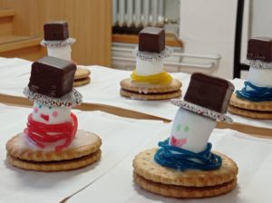 Der dritte und vierte Jahrgang wurde in der Küche kreativ und hat kleine Häuschen und Schneemänner kreiert. Lecker!