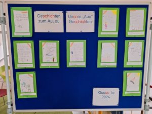 Die Klasse 1 lernte in den vergangenen Wochen den Laut Au kennen. Die Kinder suchten nach Wörtern, die mit Au beginnen oder die ein au in sich haben.