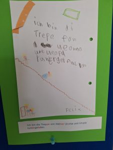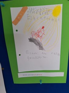 Die Kinder beschäftigten sich intensiv mit dem Laut. Dabei übten sie die Schreibweise, hörten ob der Buchstabe in manchen Worten zu finden ist und schrieben erste Wörter und Sätze.