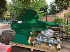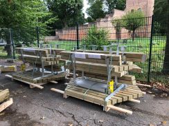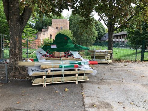 Heute haben die Aufbauarbeiten für das Klettergerüst begonnen: