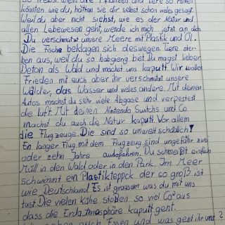 Im Religionsunterricht der Klasse 4c drehte sich alles rund um das Thema Schöpfung und Schöpfung bewahren. Wir stellten fest, dass die Natur im Moment einige Probleme hat. Daher verfassten wir einen Brief von der...