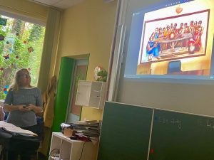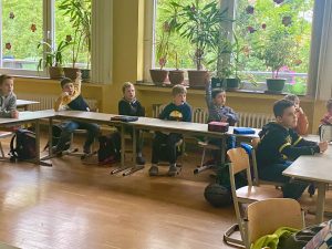 Am 19.April war die Lehrerin unserer Partnerschule in Nigeria, Meggie Kantert, zu Besuch in der Klasse 2b. Wir durften einen Film über das dortige Schulfest sehen und Fragen stellen. Zum Schluss gab es eine Karte mit Grüßen aller Kinder, die wir Meggie Kantert nach Nigeria mitgaben. Ein eindrucksvolles Erlebnis!