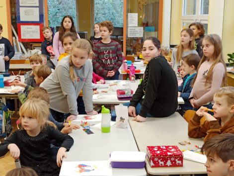 Am letzten Schultag vor den Weihnachtsferien überraschte die Klasse 4c ihre Patenkinder aus der Klasse 1a mit selbstgebastelten Weihnachtsgeschenken. Anschließend wurde gemeinsam gebastelt. Eine schöne Einstimmung auf Weihnachten!