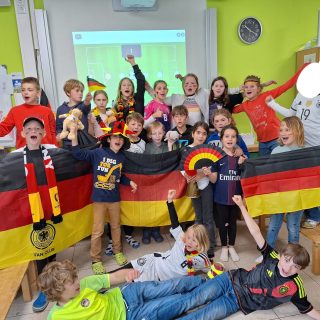 Die ganze Grundschule an der Burg ist im Fußballfieber. In den Klassen hängen viele Fahnen und die Spielpläne werden fleißig ausgefüllt. An den Tagen der Deutschlandspiele sieht man die ganze Schule in schwarz, rot,...