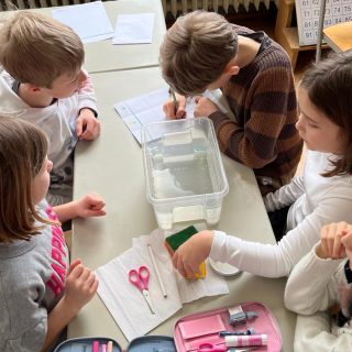 In den letzten 4 Stunden vor den Ferien haben wir uns mit dem Thema „Material & Stoffe untersuchen“ beschäftigt. So wurden zunächst im Kreis verschiedene Gegenstände aus dem Klassenzimmer möglichst genau beschrieben und erraten....
