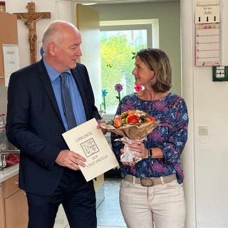 Am Dienstag den 21. Juni 2022 feierte unsere Sekretärin Michaela Hiller ihr 25-jähriges Dienstjubiläum.Anlässlich dieses Festtages wurde Sie von Herrn Maas und Frau Olles an Ihrem Arbeitsplatz besucht. Sie verliehen ihr feierlich Ihre Urkunde....