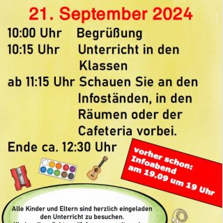 Liebe Kinder, liebe Eltern, wir freuen uns auf ein tolles Schuljahr 2024/2025 mit Euch und Ihnen. Spannende Dinge warten auf uns! Alle Kinder des zweiten bis vierten Schuljahres begrüßen wir am 21.08 um 08:05...