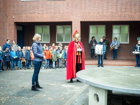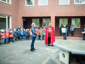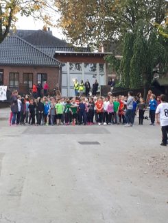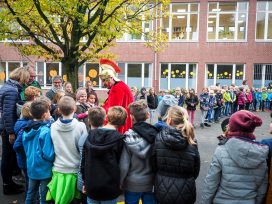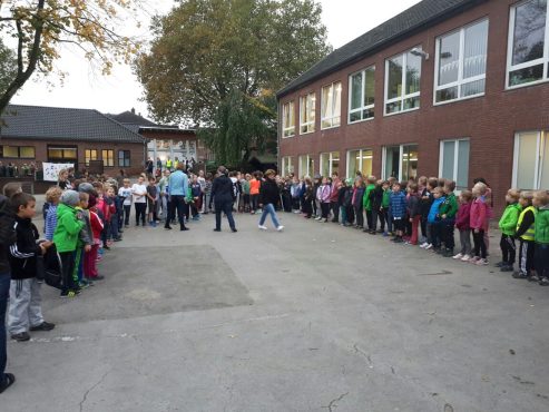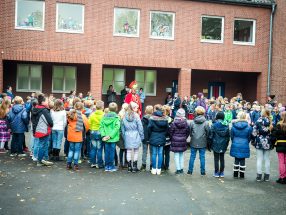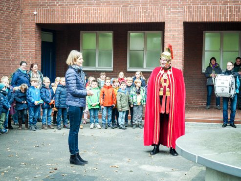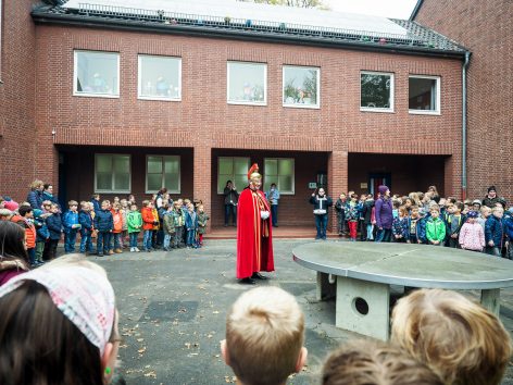 Kurz nach der Pause ging heute Morgen ein Raunen über den Schulhof. Man hatte ihn bereits entdeckt. Der St. Martin war gekommen, um sich die Fackeln der einzelnen Klassen anzuschauen und die Kinder einzuladen. Denn am Freitag ist es wieder soweit.