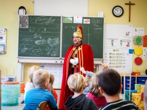 St. Martin und seine Herolde ziehen dann wieder durch die Stadt und erinnern an die großzügigen Taten und das Leben des späteren Bischofs. Wir sind natürlich auch wieder mit dabei. Denn alle Klassen haben in den letzten Tagen und Wochen ordentlich gebastelt und sich super viel Mühe gegeben.