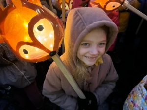 Die Füchse und Waschbären waren in diesem Jahr zum ersten Mal mit dabei. Sie hatten ihre Klassentiere auch auf ihren Laternen verewigt.