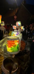 Die Erdmännchen und Affen hatten bunte Herbstlaternen vorbereitet, die trotz Nieselregen bis zum Schluss intakt blieben.