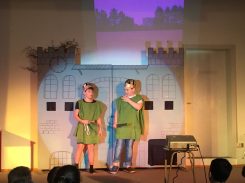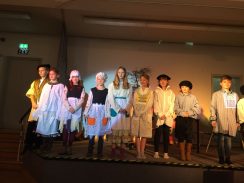 Wir hatten bei den Proben viel Spaß, obwohl es nicht einfach war, den ganzen Text auswendig zu lernen. Mit der tollen Hilfe von Frau Weegen-Martin und ihrem Humor, haben wir es dann aber schließlich geschafft. Besonders toll waren die Kostümproben, weil man sich durch die Kleidung so richtig in die Rolle hineinversetzen konnte. Die musikalische Begleitung von unserem Chor unter der Leitung von Frau Jochim hat alles noch peppiger gemacht.