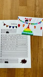 In den weiteren Stunden wurde an verschiedenen Aufgabenstellungen das Schreiben von eigenen Einladungen geübt.