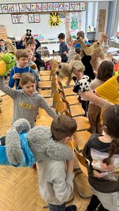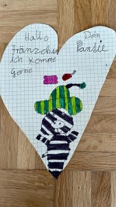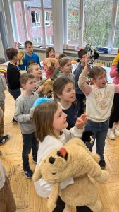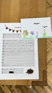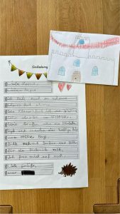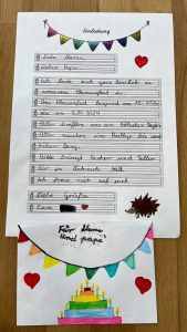 So haben die Kinder der 2a beispielsweise eine Einladung an ihr Kuscheltier geschrieben und dann überarbeitet zu Hause an eben dieses abgegeben.