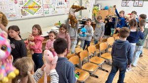 Die 2. Klassen haben vor Ostern ihr erstes großes Aufsatzthema erarbeitet: Wie schreibe ich eine Einladung?