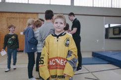 Heute aber am 11.03. war an Unterricht nicht zu denken, denn sieben Eishockeyspieler gestalteten für unsere Kinder eine bewegte Pause, gaben geduldig Autogramme, beantworteten Fragen und standen für Selfies zur Verfügung.