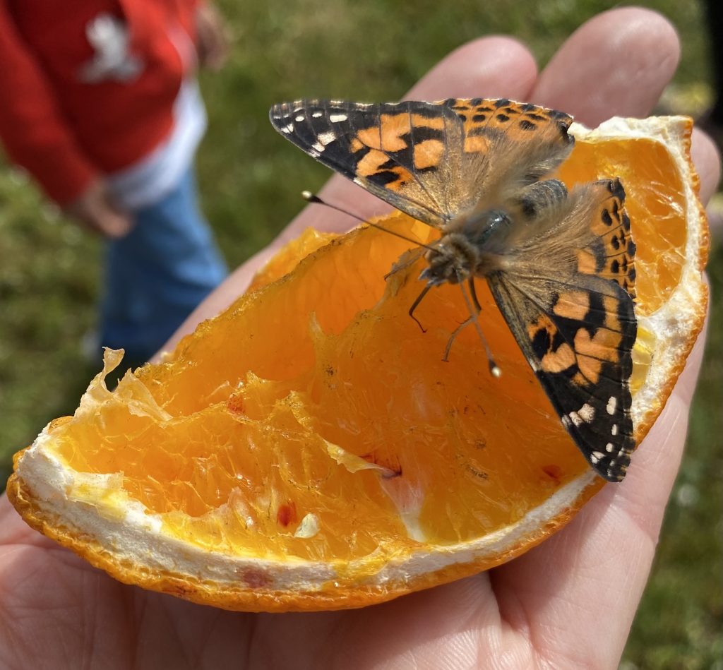 Über die nächsten Tage wurden die Kinder dann Zeuge des unstillbaren Hungers der Raupen und konnten staunend beobachten, wie die kleinen Larven der Schmetterlinge in Windeseile zu fingerdicken Raupen heranwuchsen.