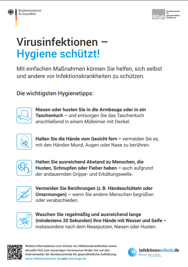Das Gesundheitsamt hat Informationen zur Vorbeugung von Virusinfektionen herausgegeben.