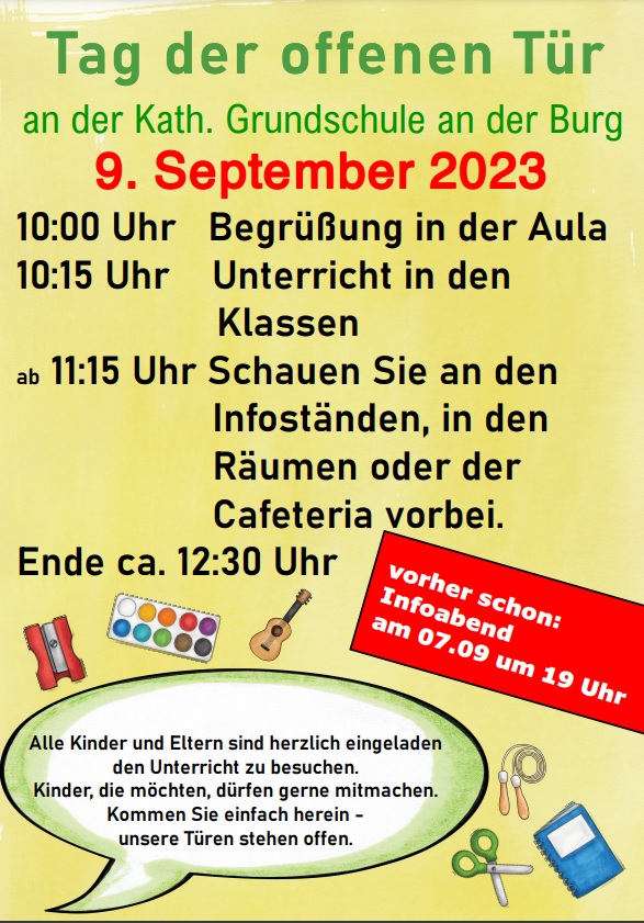 Am 07.09.2023 laden wir alle Eltern von zukünftigen Schulkindern um 19 Uhr in die Aula unserer Schule zu einem Infoabend ein.