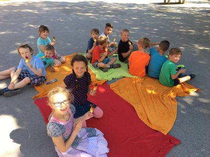 Zuvor hatten die „Großen“ die schlichten weißen Tüten noch bemalt und dekoriert. Die Freude war riesig und das Ganze ein tolles kleines Event während des Schulalltags.