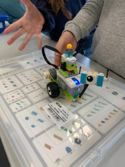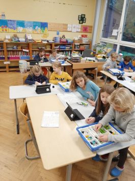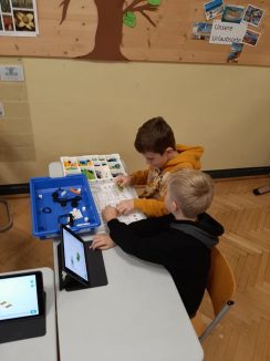 Dann erleuchteten die Augen der Kinder. Denn heute lernten sie LEGO mal etwas anders kennen. Freudig und mit einer Menge Begeisterung nahmen die Kinder die LEGO WeDo Bausätze und Ipads entgegen. Nach einer kurzen Einweisung ging es dann auch direkt los. Zunächst bauten die Kinder ihren ersten Milo (Forschungssonde) zusammen. Ein Highlight für die Schüler war es, als ihr gebautes Modell dann „lebendig“ wurde. Dies gelang ihnen, durch die einfache bedienbare Programmierumgebung. Sie erlernten ihrer Forschungssonde sich zu bewegen, die Farbe zu wechseln, Bilder zum Ipad zu senden. Milo sollte auch musikalisch werden. Sie hinterlegten bei Milo noch Musik. So fuhr ihre Forschungssonde nicht nur, sondern spielte bei dem ein oder anderen noch ein musikalisches Stück. Aber auch die Funktion der Dokumentation für ihr Forschungsprojekt lies die Kinder kreativ sein, sie nutzten die Schreibfunktion, Diktierfunktion sowie die Bilderdokumentation.