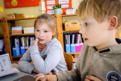 Heute war die Klasse 1a dran. Es war so still, dass man eine Stecknadel hätte fallen hören können. Die Kinder waren interessiert, wissbegierig und mit großer Freude dabei.