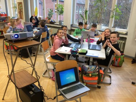 Die Kinder wachsen heute in einer durch Medien geprägten Gesellschaft auf, weshalb es unabdingbar ist, sie dabei zu unterstützen die Möglichkeiten, aber auch die Gefahren von Medien zu erkennen. Dementsprechend ist das Ziel der Medienerziehung, die Kinder zum bewussten Umgang mit Medien zu ermutigen und damit die Selbstständigkeit diesbezüglich zu fördern. Die elektronischen Informations- und Kommunikationstechnologien sind ebenso wie die traditionellen Medien Hilfsmittel des Lernens und Gegenstand des Unterrichts[1]. Durch die Arbeit mit unseren Laptops wird den Kindern eine erste Orientierung vermittelt. Sie werden angeleitet, vorhandene Informations- und Kommunikationsmedien sinnvoll zu nutzen. In den nächsten Medienstunden soll die systematische Arbeit mit unseren Laptops dazu beitragen, die Medienkompetenz der Kinder weiter zu entwickeln.