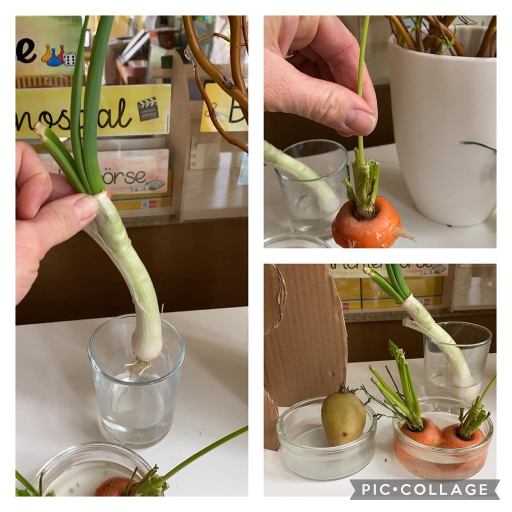 Beim Regrowing konnten wir beobachten, wie aus Gemüseresten neues Grün wächst. So erhielten wir neue Pflänzchen, die wir wieder einpflanzen konnten.