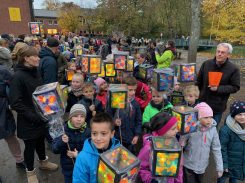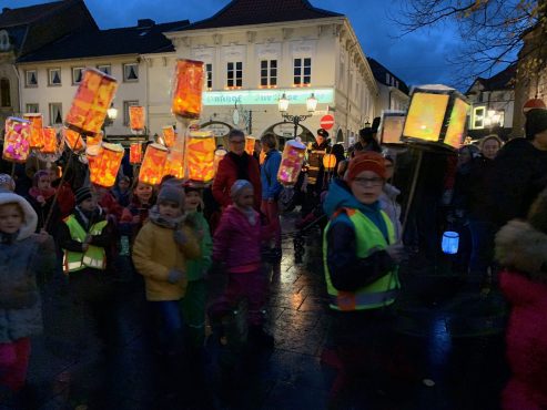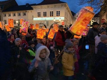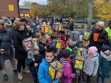 Bei trockenem Wetter zogen die Kinder stolz mit ihren Laternen durch den Ort. Leider musste der Glühweinstand aufgrund des Regens am Mittag abgesagt werden.