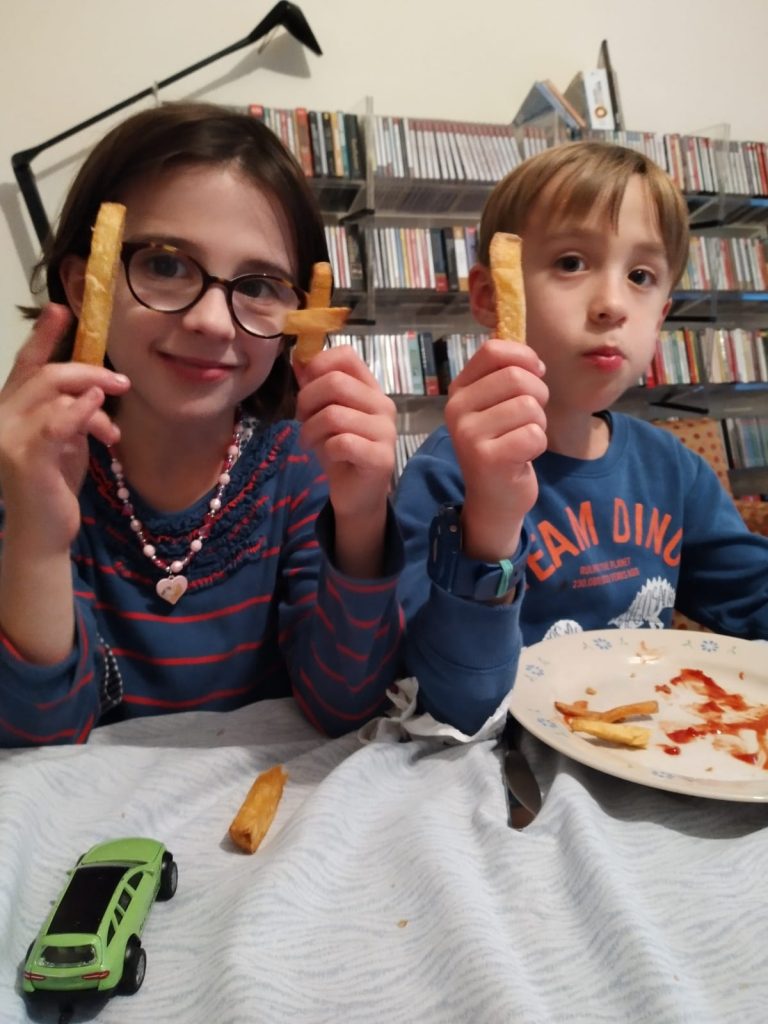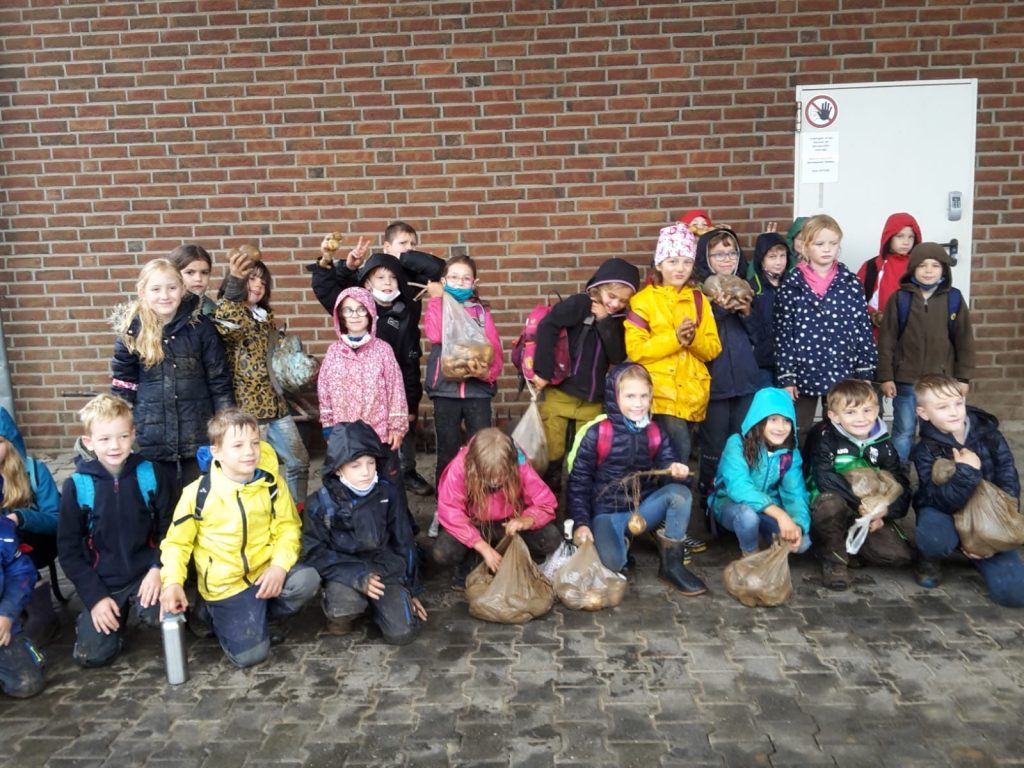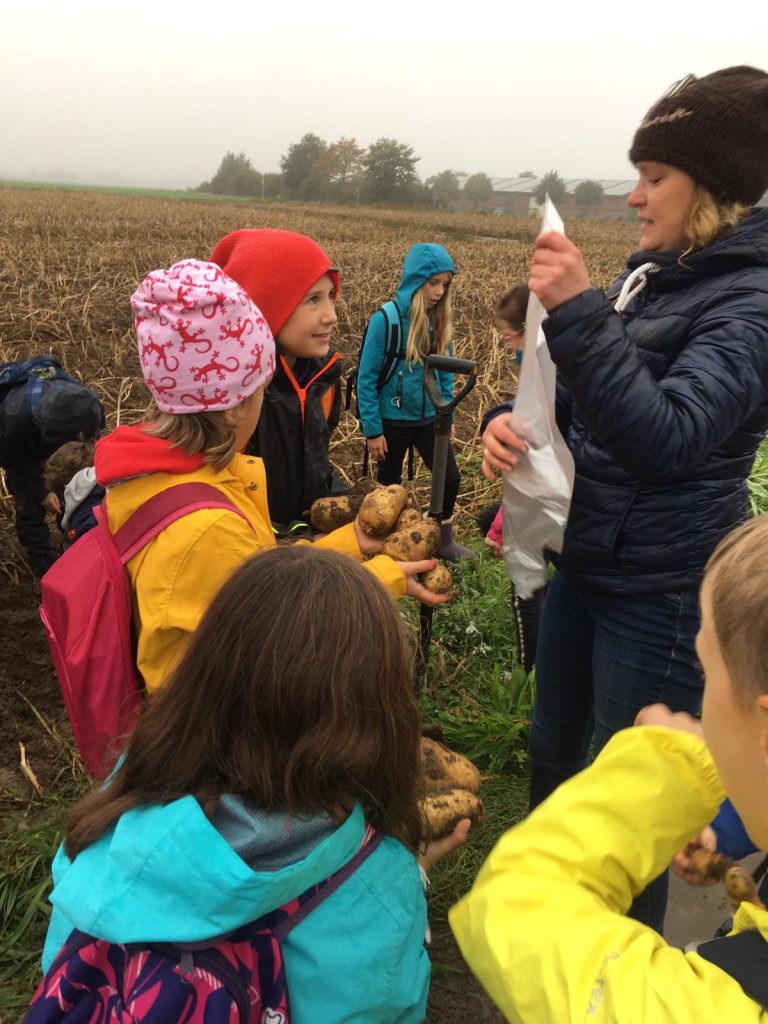 Wir durften uns selber auf dem Acker Kartoffeln ausbuddeln und sie mit nach Hause nehmen. Abends gab es in vielen Familien der Klasse 3a leckere Pommes. 🙂