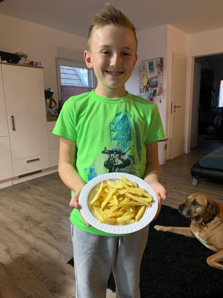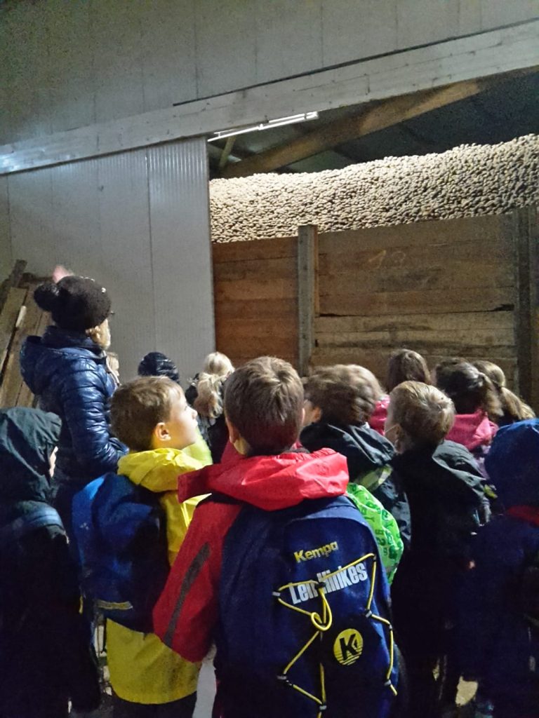 Kurz vor den Herbstferien haben wir mit unserer Klasse einen Ausflug zum landwirtschaftlichen Betrieb der Familie Vennekel gemacht. Dort werden viele Pommeskartoffeln angebaut. Frau Vennekel hat uns erklärt, wie Kartoffeln gepflanzt werden, wie sie wachsen, wie sie geerntet und anschließend gelagert werden. Die Lagerhalle ist riesig groß und die Kartoffeln bleiben dort nach der Ernte im Oktober bis ungefähr Mai liegen. Dann werden sie in eine Fabrik gefahren, die daraus Pommes macht.