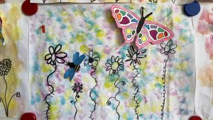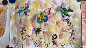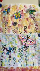 Nach einem Einstieg über eine Fantasiegeschichte malten die Kinder zunächst ein Wiesenbild nach ihren Vorstellungen und ihrem Wissen.
