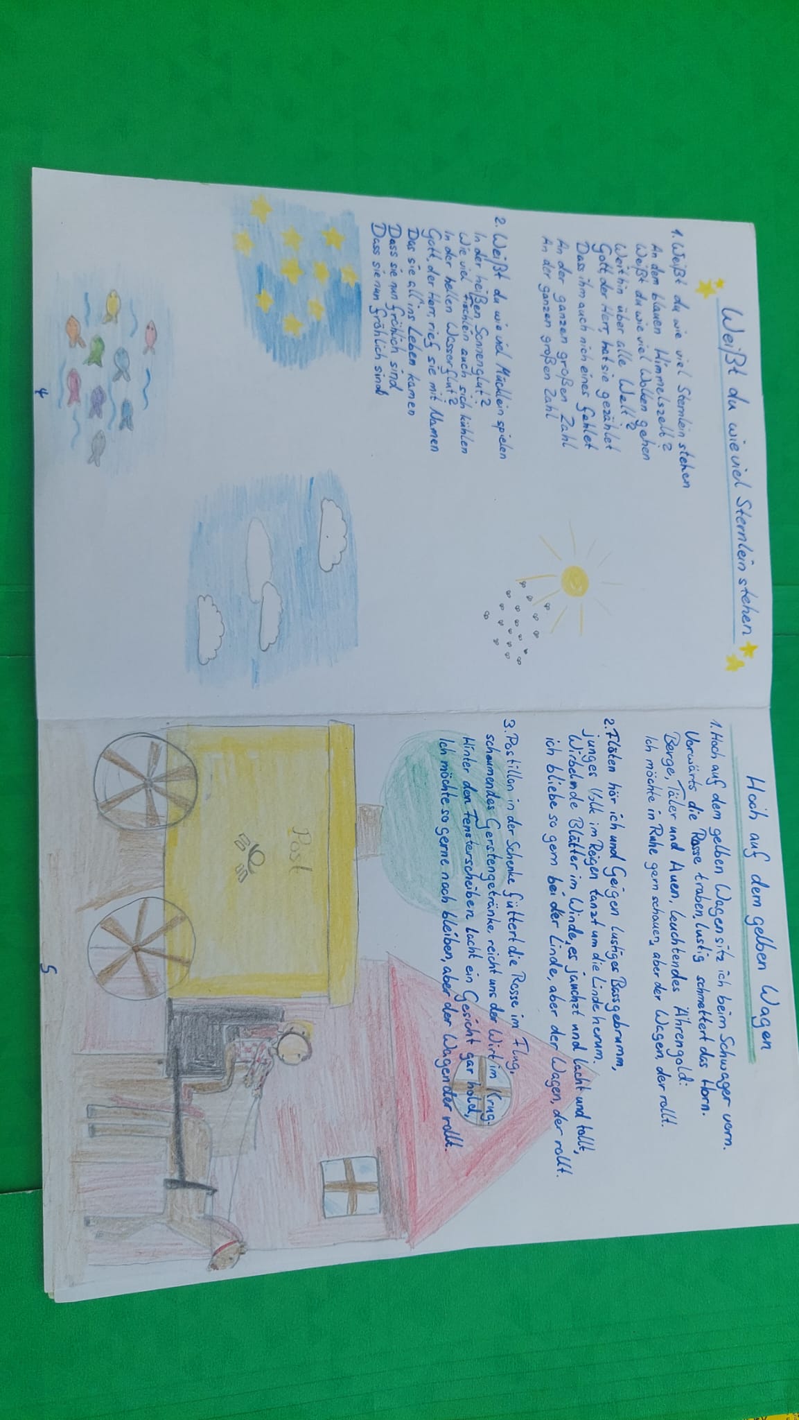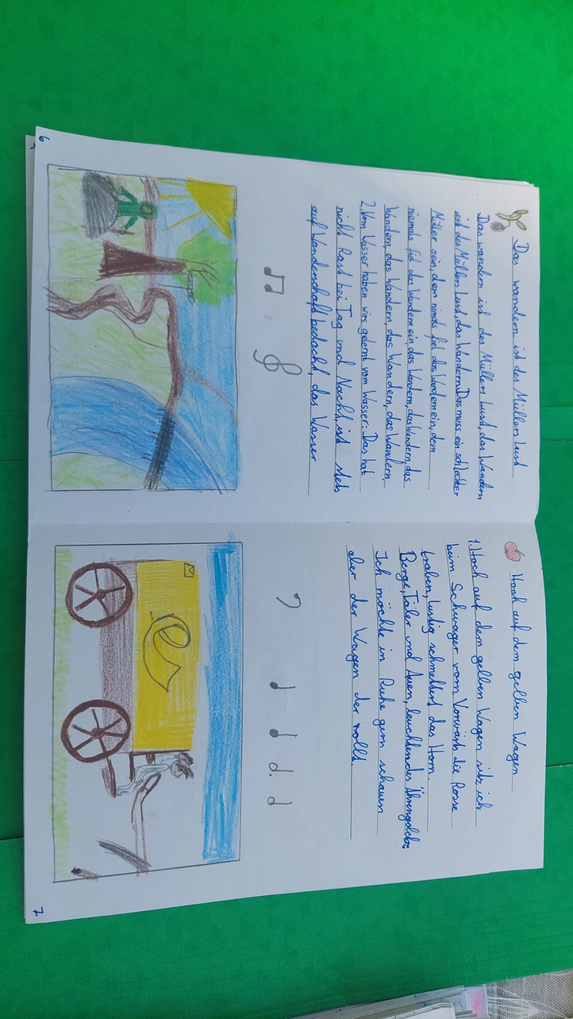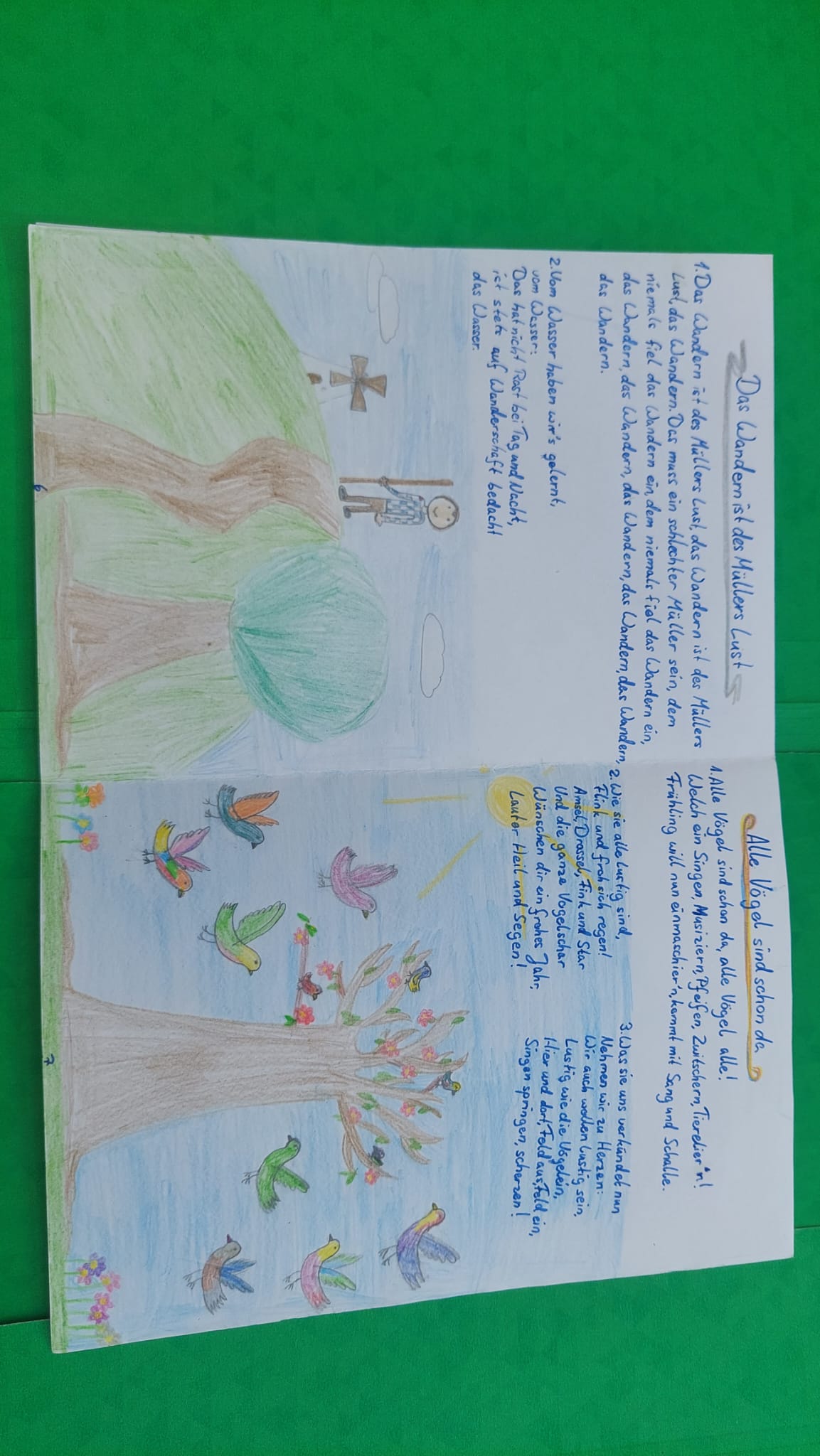 Die Kinder der 3. und 4. Schuljahre haben sich mit dem ungarischen Volksmusikforscher Bela Bartok beschäftigt. Sie haben daraufhin mit Hilfe ihrer Familie eigene Aufnahmen von deutschen Volksliedern erstellt und daraus ein eigenes Liederbuch gestaltet.