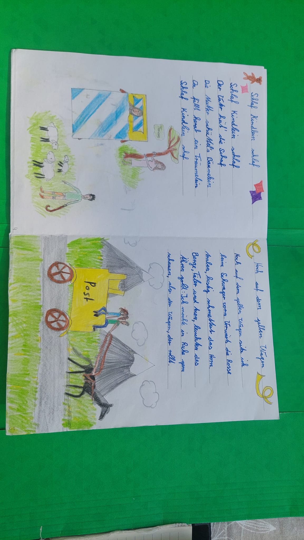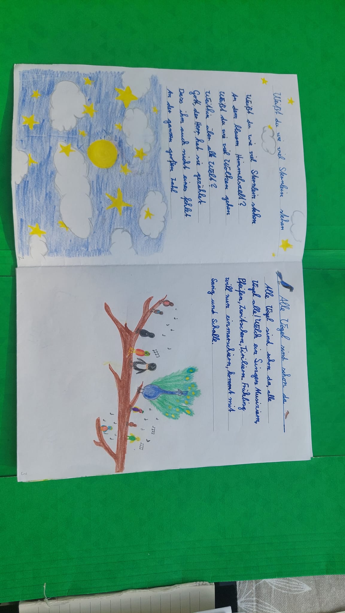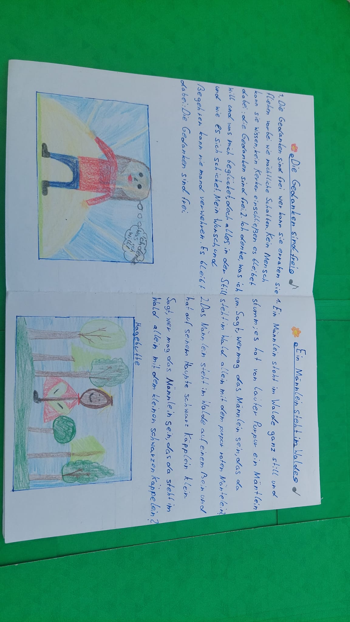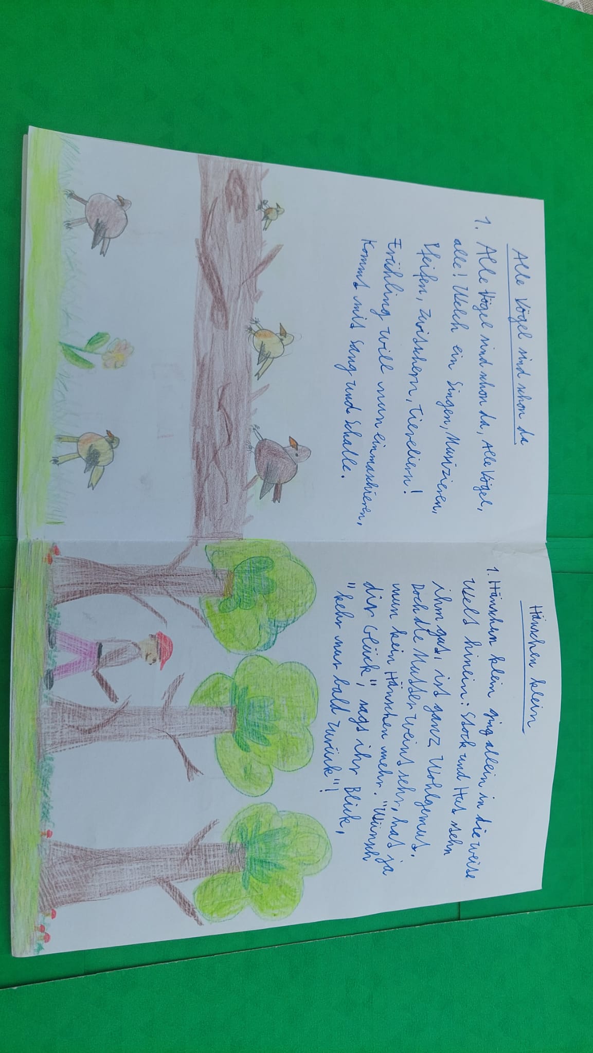 Die Kinder der 3. und 4. Schuljahre haben sich mit dem ungarischen Volksmusikforscher Bela Bartok beschäftigt. Sie haben daraufhin mit Hilfe ihrer Familie eigene Aufnahmen von deutschen Volksliedern erstellt und daraus ein eigenes Liederbuch gestaltet.