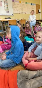 Diese wurden in den Gruppenraum der „Gespenster“ eingeladen, um beim Vorlesen zu lauschen.