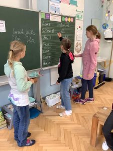 Auf Grundlage der Bilderbücher „Ich bin für mich“ und „Im Dschungel wird gewählt“ wurden wichtige Eigenschaften eines Klassensprechers sowie seine Aufgaben, aber auch erste demokratische Wahlgrundsätze erarbeitet. Dies wurde in den Folgestunden vertieft.