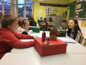 Die Reihe endete mit einer Präsentation der Lesekisten. Durch die Präsentation der Lesekisten sollte den Zuschauern richtig Lust auf das Lesen der präsentierten Bücher gemacht werden – und das hat bestens geklappt!