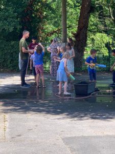 Die Kinder der OGS und Betreuung hatten großen Spaß bei Wasserspielen auf dem Schulhof.